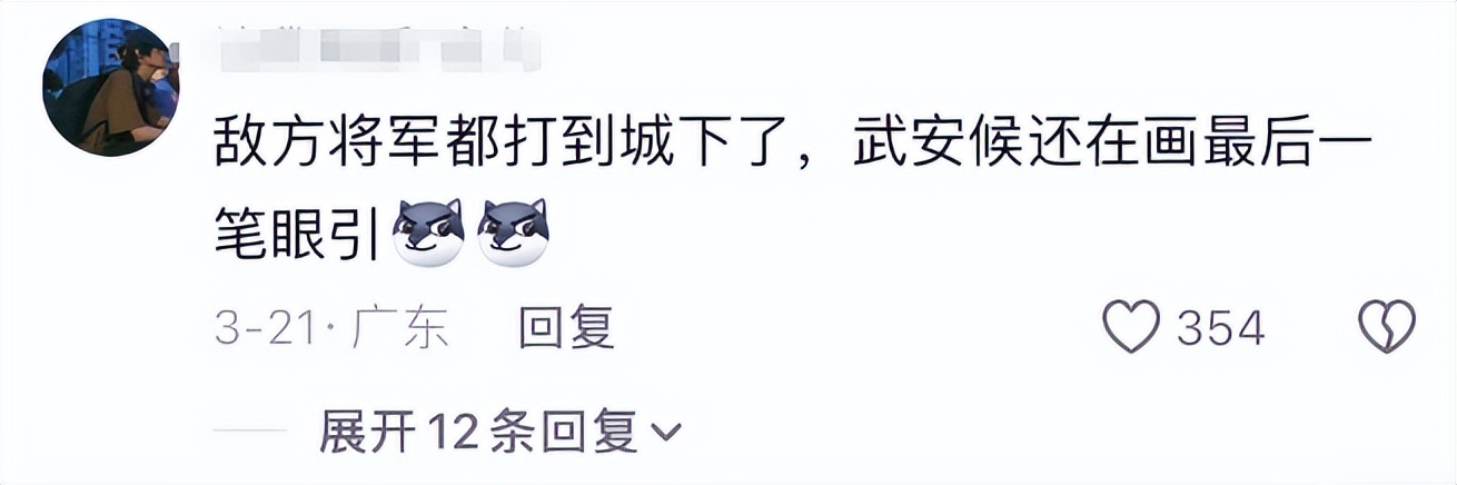 不少观众表示,这样的形象与铁血将军的身份严重割裂,完全没有军人应有的硬朗与血性,有网友调侃称:敌军都打到中军大帐了,将军还在画眼线。