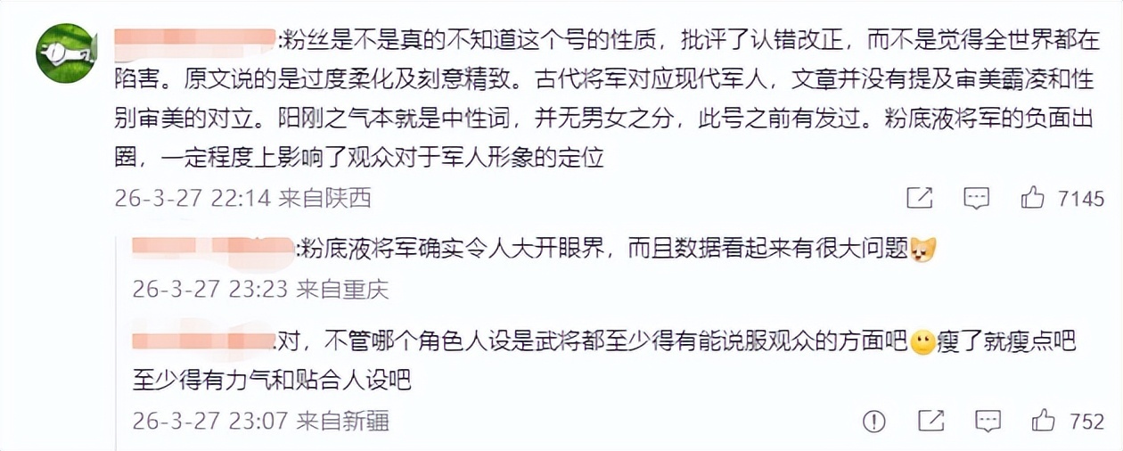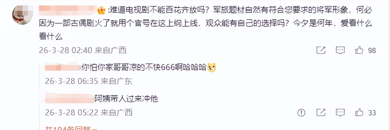 网友纷纷表示,这才是符合大众认知的将军模样,有风骨、有气场,能撑起家国大义的设定。