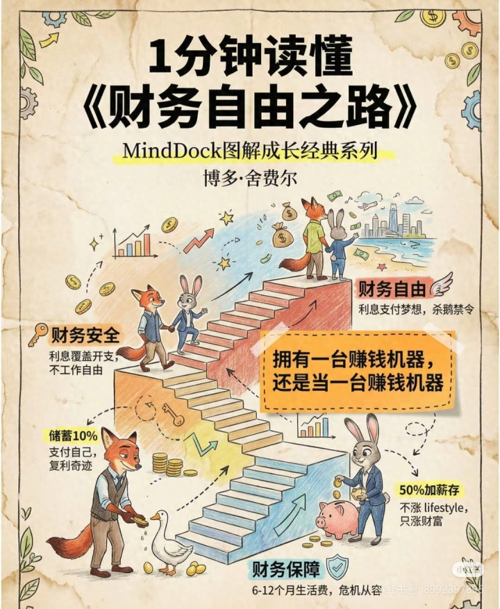 从财务保障到财务安全,再到财务自由;从复利的奇迹到投资vs投机的本质,从储蓄的底层逻辑到实操方法,给你一套能直接落地的财富指南,让你从今天开始,踏上财务自由之路!
